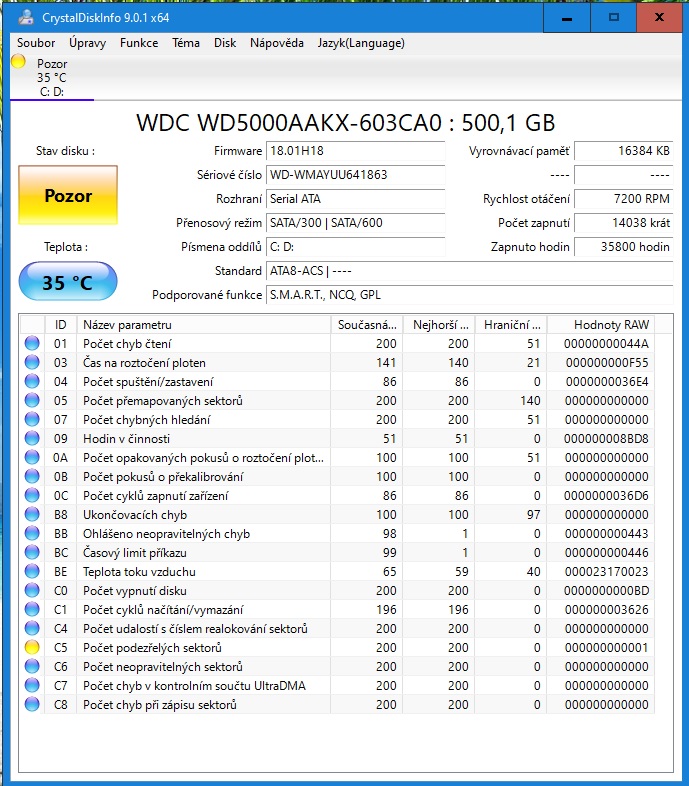 Včera jsem opravil systémové soubory pomocí příkazů DISM a SFC. Ale nepomohlo to. Dnes počítač opět nenastartoval řádně. MEMTEST86+ žádnou chybu nenašel, takže RAMka je v pořádku. Povrchový test disku s programem HDScan nalezl 1 vadný blok a několik tisíc pomalých bloků. Zde je obrázek:
