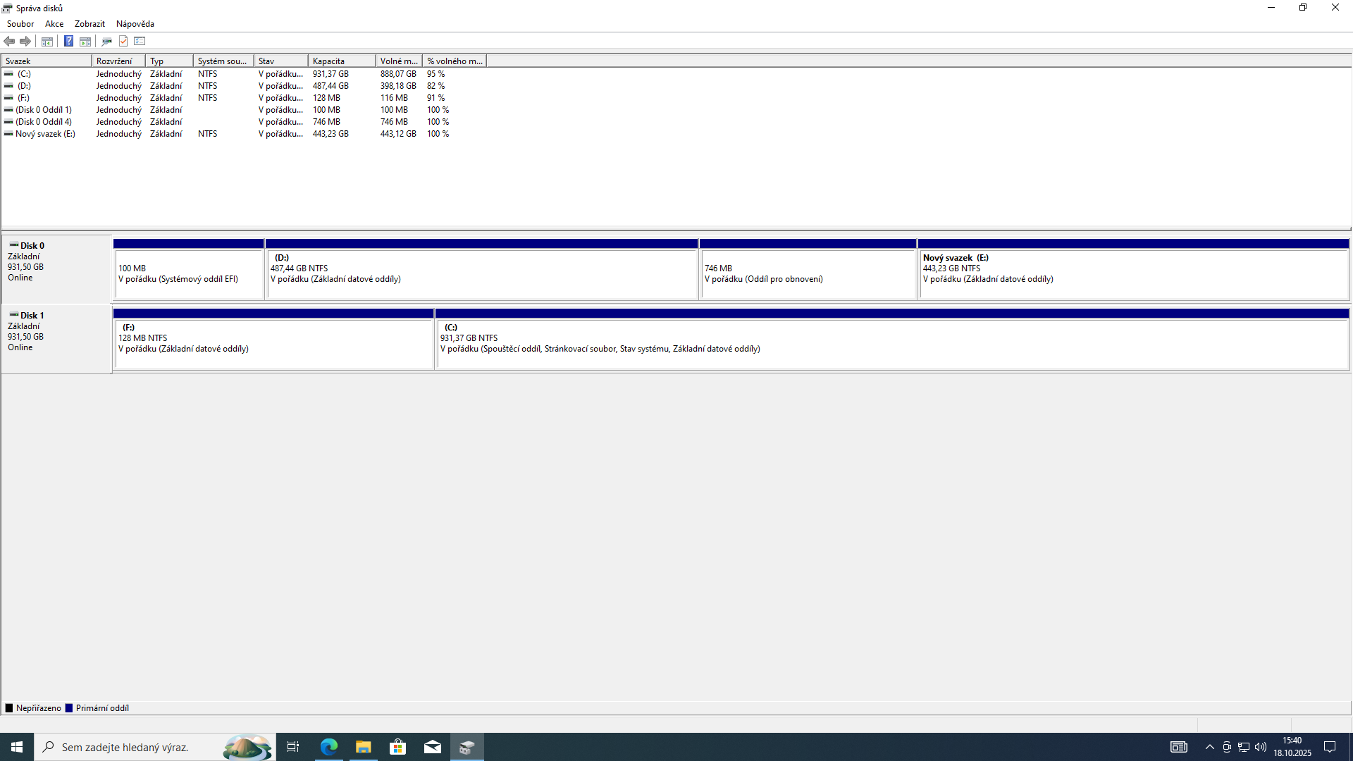 Ešte raz sa preklikaj cez Nastavenie-Systém-Úložisko-Rozšírené Nastavenie úložiska-Disky a Zväzky.
