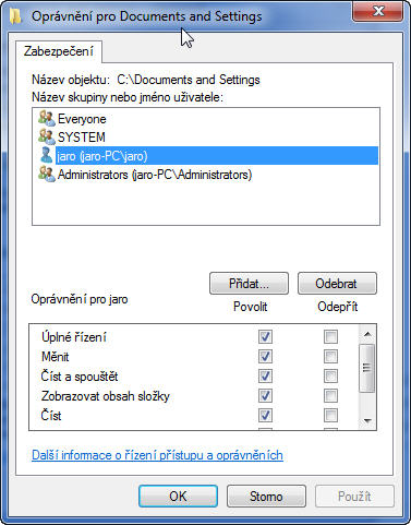 Díky oběma, už jsem tam lecos viděl. Pořád se ale nedostanu do Document and Setting a ProgramData v Program Files. Nedostane se tam ani