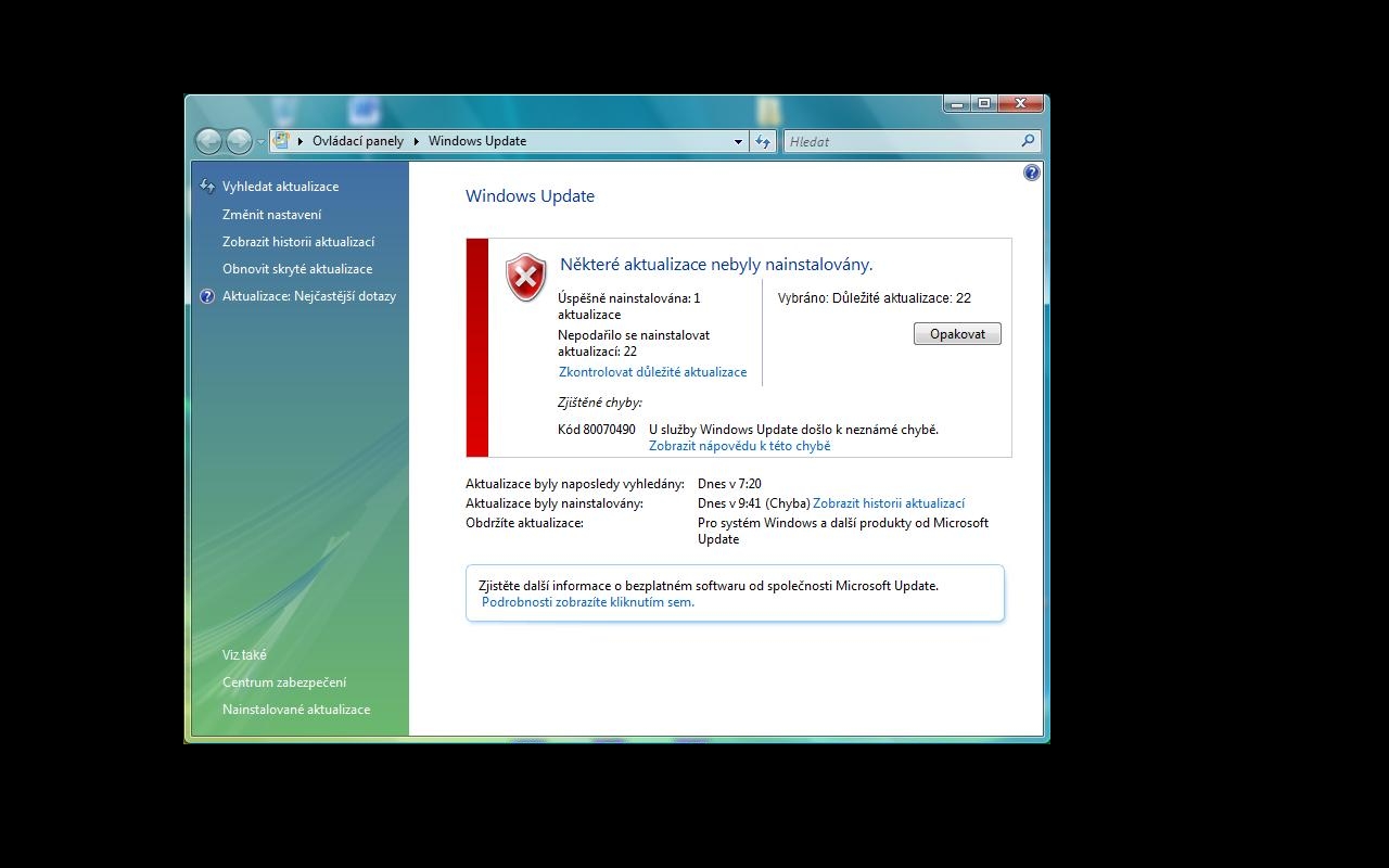 Cau,kdyby ses kouknul poradne na ten screen cos poslal tak tam je kod te chyby,takze jsem to hodil do goodlu,tady je naky navod jak to opravit http://windows.microsoft.com/cs-CZ/wind ... r-80070490