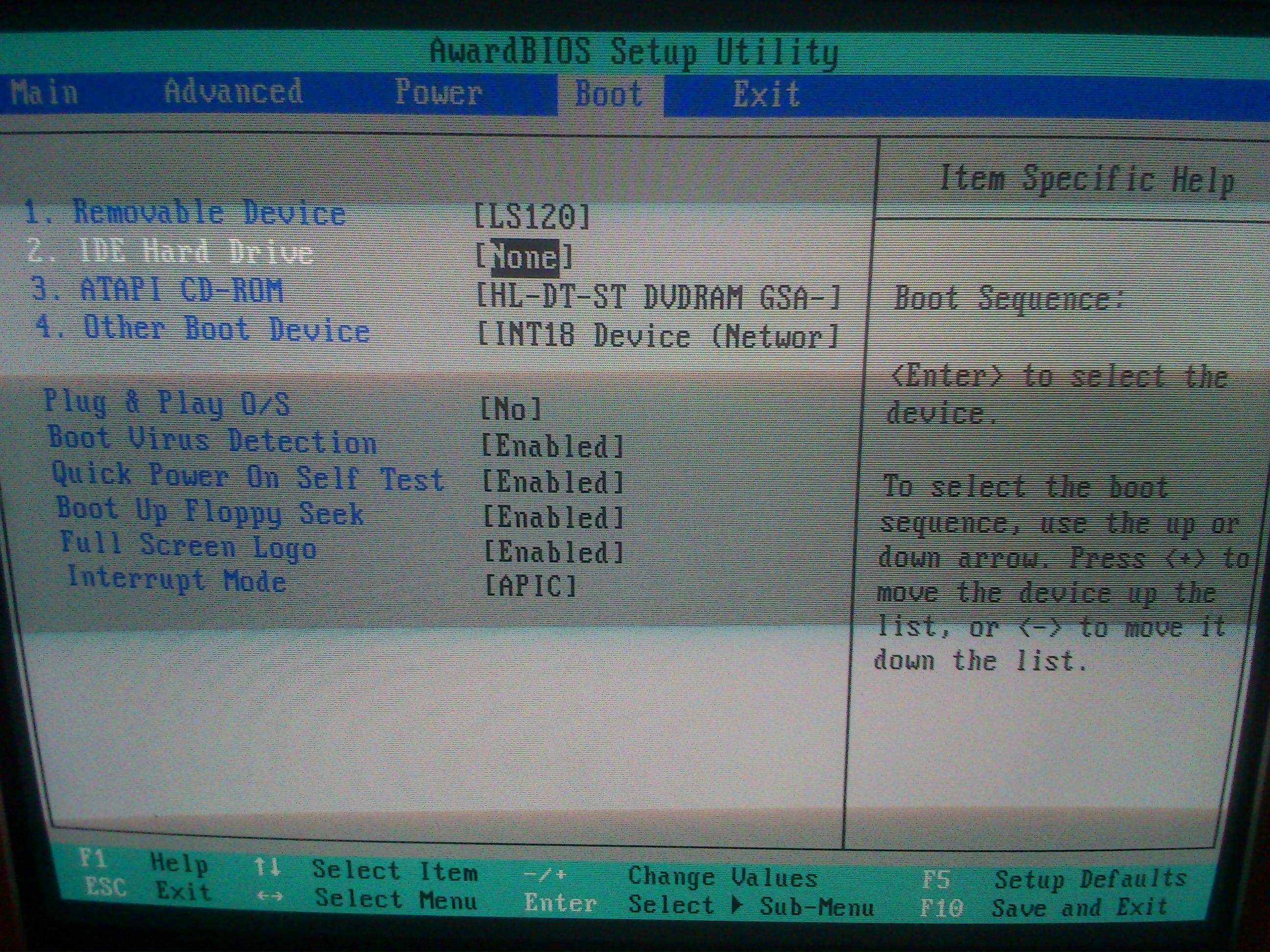 V BIOSu jsem nastavil BOOT první na HDD a jako druhé DVD a ostatní disabled