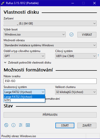 - instalátor soubory nenajde, protože flashka je vytvořena v media creation tool a zůstal ponechán systém souborů NTFS. A proto jsi měl při vytváření instalačky použít rufus, který umožňuje před formátem flashky nastavit FAT32 (viz. obrázek, který jsem přiložil). A tato chyba se neobjevuje, pokud je instalace prováděna z DVD.