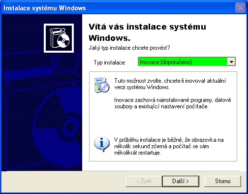 Inovace WIN XP PRO proběhla ve VIRTUALBOXu do konce.