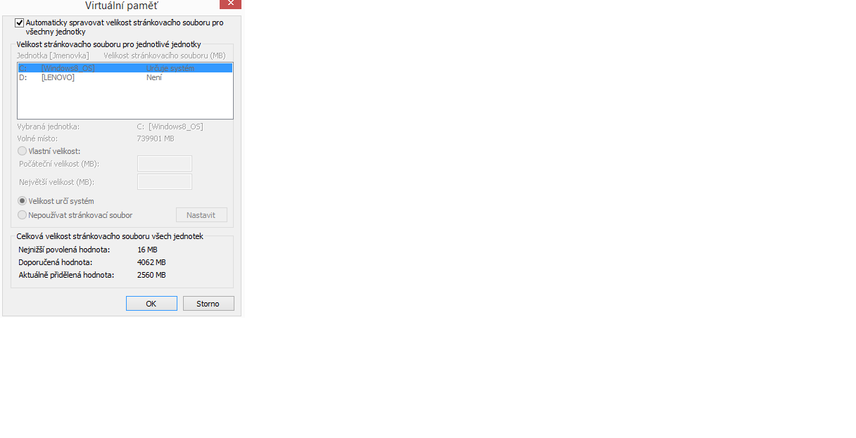 Re: WIN8 - V počítači není k dispozici dostatek paměti