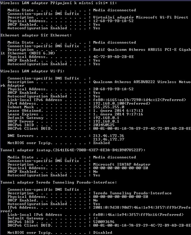 Tak mi ten ipconfig screenni a dej mi ho sem jako přílohu.