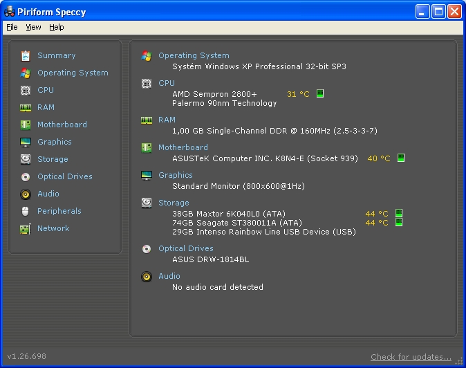 V PC mám WinXP SP3 a co je v tom za HW nemám tušení a ani nemám tušení, jak to zjistit. Už jsem to řešil v jiném tématu, ale bohužel se mi nedostalo odpovědi a já už nemám nervy to hledat. Ani už nevim, kolik jsem toho marně nainstaloval a zase odinstaloval...prosím o pomoc.