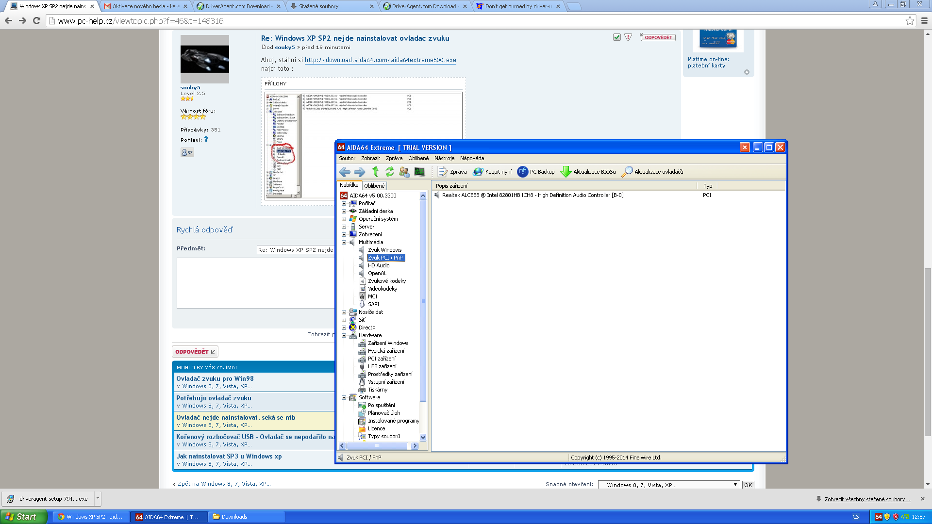 Re: Windows XP SP2 nejde nainstalovat ovladac zvuku