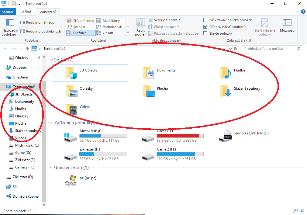Poznámka: na Win 7 se většina těchto složek nazývá právě knihovny.