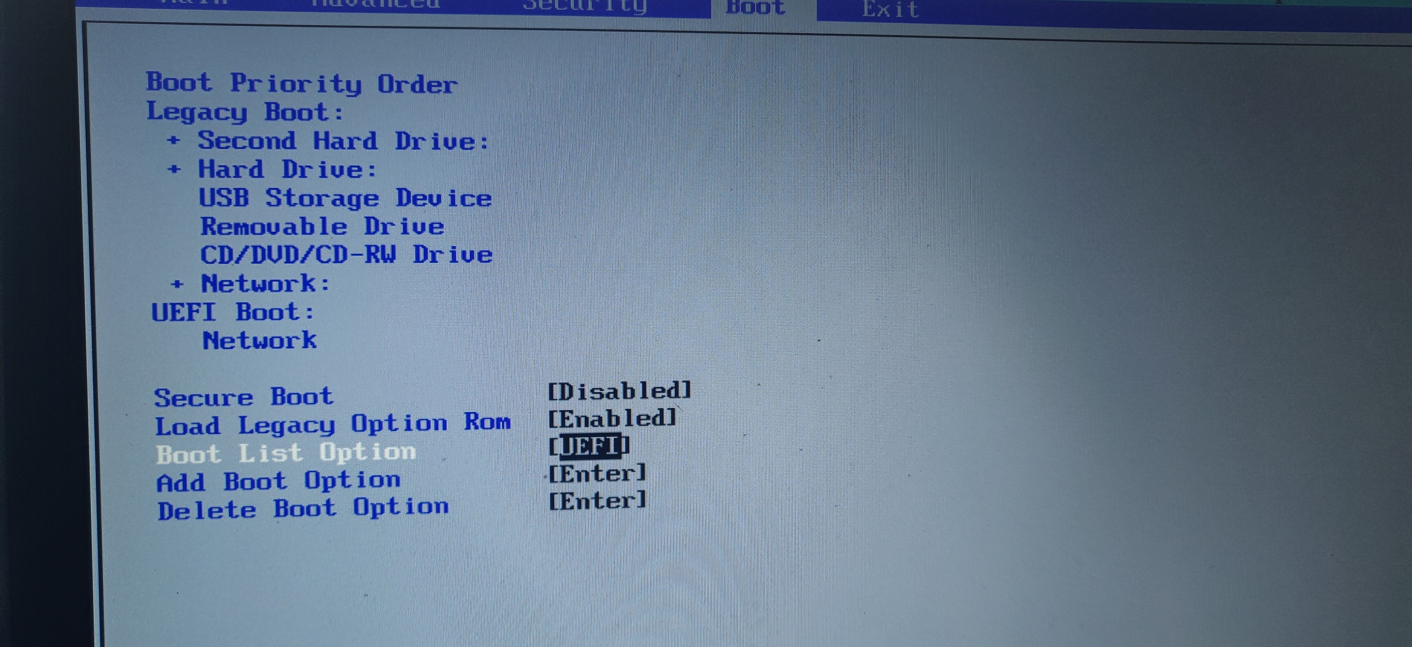 Zkusil jsem tedy změnit Legacy na UEFI ale poté mě nešlo nabootovat instalační dvd tak jsem jsem to dal zpátky.