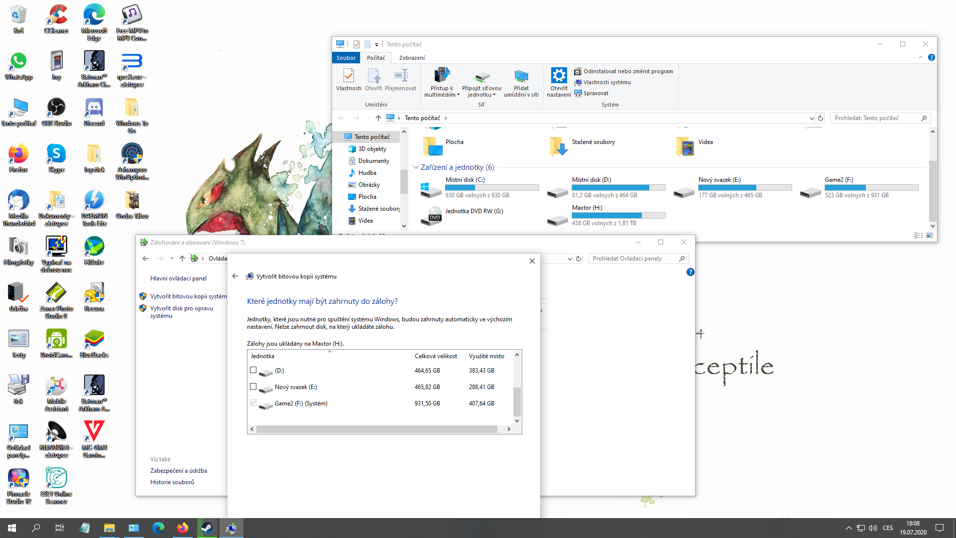 Nedávno jsem dával třetí HDD do PC. No dnes jsem chtěl vytvořit novou bitovou kopii systému/přímo z Ovládacích panelů/. Ovšem když se o to pokusím, tak mi systém zaškrtne ke kopírování i nový disk/F:/, kde žádný systém nemám. Viz. obrázky kdy sytémový disk mám C:. Proč mi tam naskakuje i to F:, kde mám čistě jen nějaké hry.