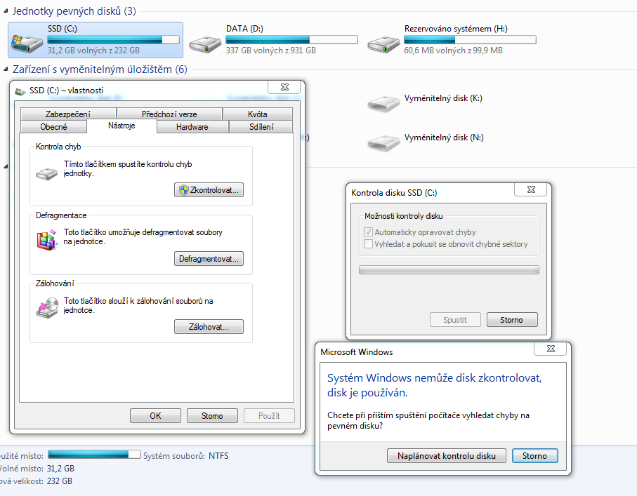 Vlastně i teď všechno funguje, soubory se na cloudu normálně synchronizují.. jen pořád vyskakuje tahle otravná hláška a při startu se spouští kontrola disku..
