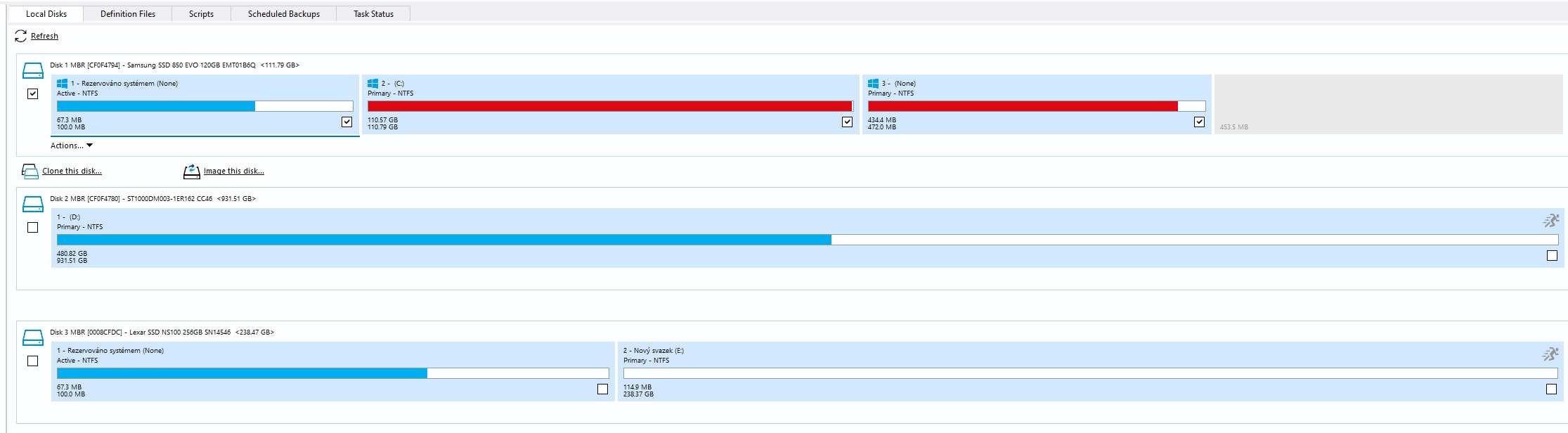 Pak neni treba vytvaret snapshoty beziciho OS, klonuje se disk na disk.