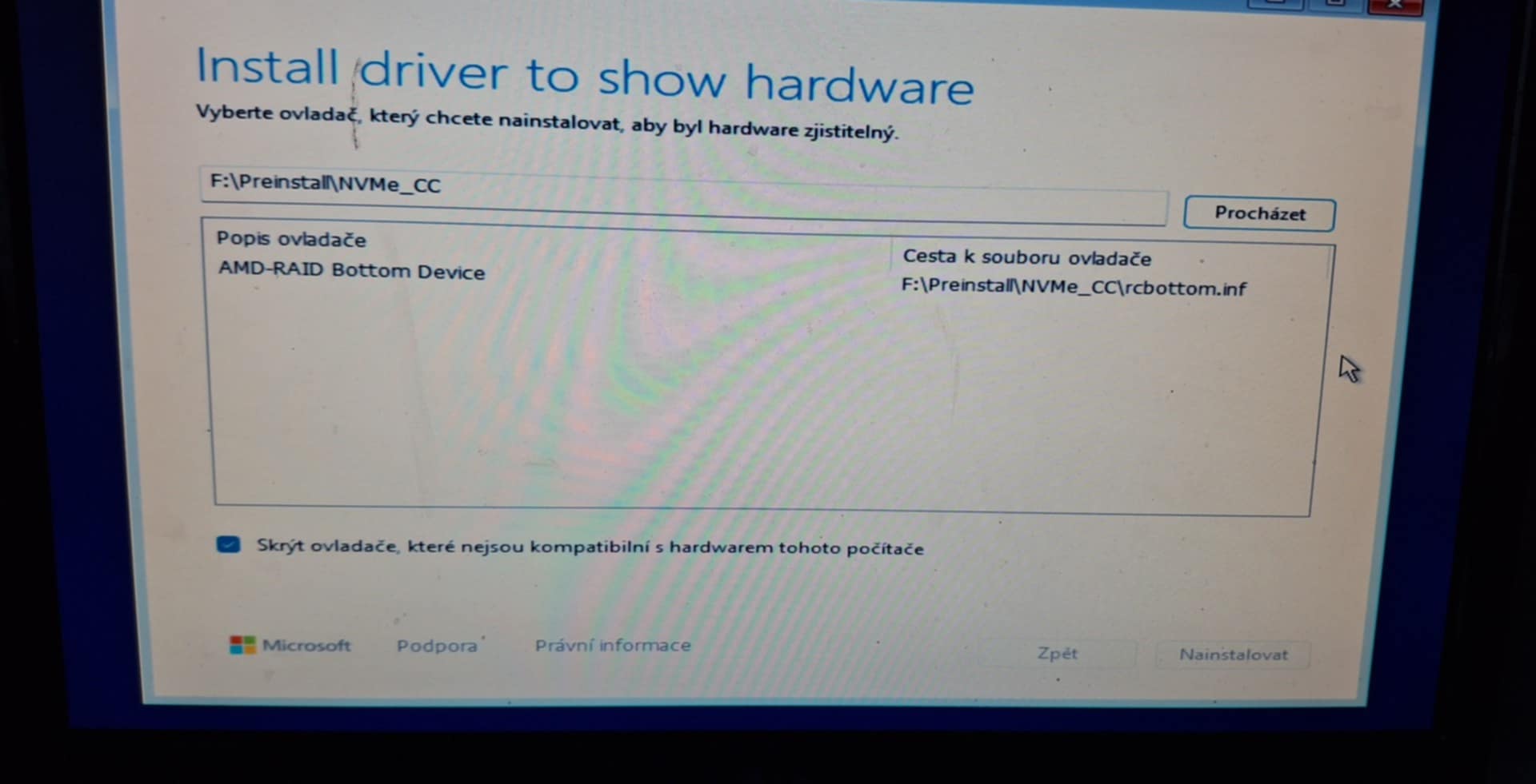 Instalace Windows 11 - nevidím nový M.2 disk