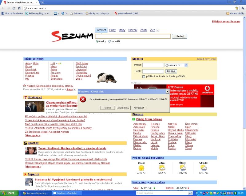 Dobrý den. Nevíte někdo, co znamená, když mi vyjíždí tato chyba? Objeví se vždy čtyřikrát za sebou (musím kliknout čtyřikrát abych to okno odklikl), pak to zmizí a asi za 20 vteřin se to objeví zas. A znovu a znovu....nevím si rady, protože to výrazně omezuje jakoukoliv práci na PC. Z každou radu předem děkuji.