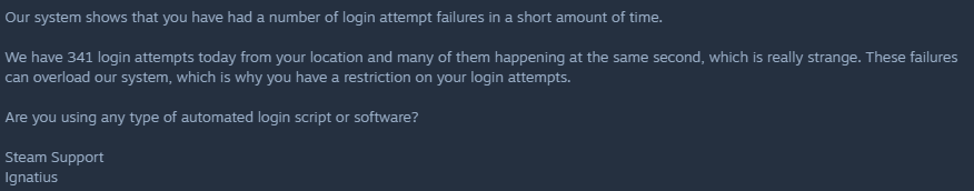 Ďalšia poznámka: pokiaľ ideš cez poskytovateľa - je možné, že to ani od teba nejde, ale niekto v sieti poskytovateľa sa pokúša nabúrať tvoj Steam profil - servery Steam v tom prípade vidia poskytovateľa ako jeden počítač, takže preto môže hlásiť, že z tvojej lokácie sa to deje.