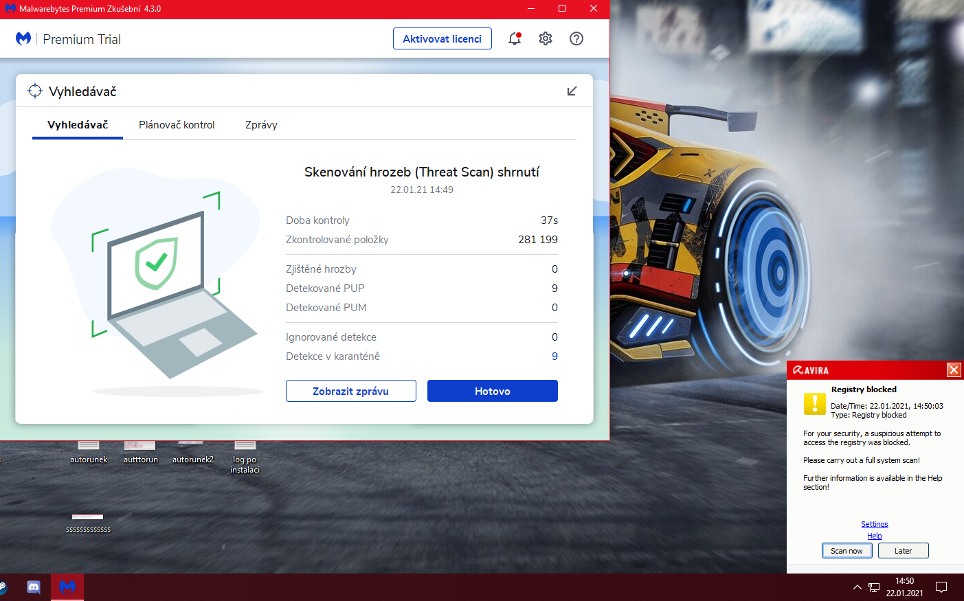 A není problém mezi MalwareBytes a AntiVirem? Protože pokaždé když těch několik souborů hodím do karantény tak mi to "blokuje" AV.