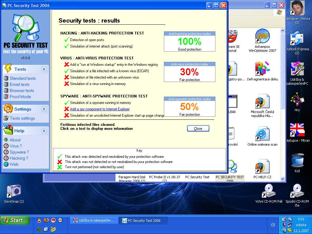 Pro kontrolu sem proved test zabezpečení PC dopadl žalostně viz příloha.