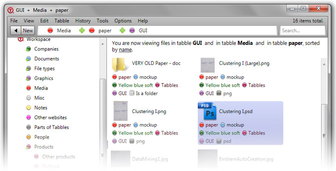 Tabbles is a tagging software that allows to tag any kind of file, emails (in Outlook), and bookmarks. It helps you to organize them independently from folders and find them when you don’t remember where they are, but only what they are about.