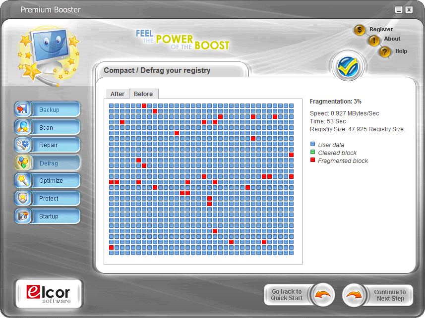 Premium Booster je profesionální nástroj pro pokročilou optimalizaci operačního systému a zvýšení výkonu počítače. Program nejprve provede podrobnou diagnostiku systému a zjistí případné problémy, které zbytečně zatěžují systém. Premium Booster provádí například čištění a defragmentaci systémového registru, správu programů a služeb spouštěných při startu systému atd.