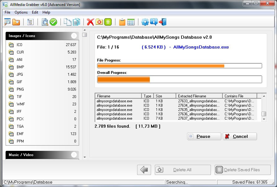 Extrakt Tisíce obrázků, videa, hudbu, zvuky schované uvnitř programů / souborů na vašem počítači s Grabber AllMedia. AllMedia Grabber vyhledávání v souborech (spustitelné soubory, knihovny, vlastní ovládací prvky, datové soubory apod.) a výpisy multimediální soubory.
