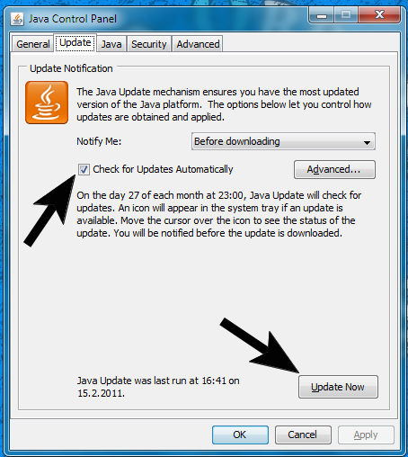 Zavrieť všetky programy, Update, odklikať podmienky a je to. Potom je dobré, zrušiť automatické Aktualizácie - Apply - Ok. Zbytočne spustená služba, Java býva aj tak aktualizovaná raz za niekoľko mesiacov, tak je lepšie sem - tam vbehnúť do panelu a takto si to zistiť a aktualizovať ručne.