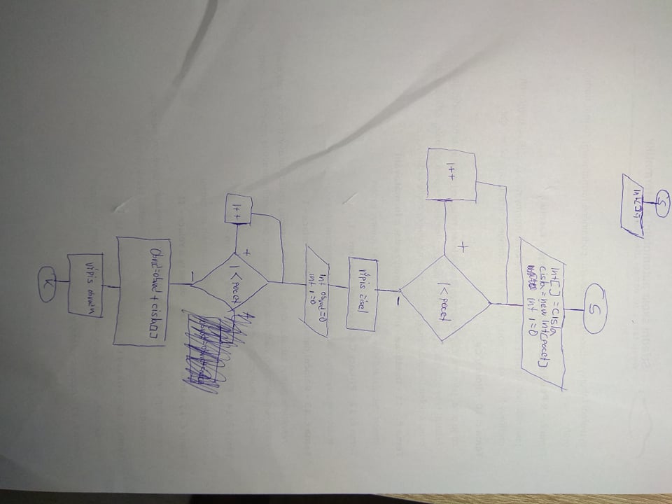 Jinak by to celkem šlo, ale nemůžeš alokovat místo pro pole předtím, než budeš znát jeho velikost, takže new musí být až za načtením pocet. Předpokládám funkci new jako volání podprogramu, proto tam mám dvojité boky toho obdélníka, ale nemusíš je tam kreslit. Ono to v tomhle případě není jednoznačné.