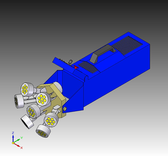 Nová svítilna se dvěma modelářskými aku a síťovým zdrojem bude mít asi 15kg. Bude ji možné provozovat i na jeden aku a to pak hmotnost klesne na cca 10kg. Světelný výkon by měl dosáhnout jako 10kW halogen. Motoricky pohyblivá ramena s bloky s led umožní změnu kužele a z toho důvodu (aby ramena nebyla příliš těžká - na chlazení s ventilátorem mě vycházel 2kg/chladič) chci použít vodní chlazení. Díky natáčecím ramenům bude moct svítilna svítit v úhlu 9 až 280st. Primitivní animace pohybu ramen a natáčení nosné desky (svítilnu při takové váze nikdo naklopenou např. při svícení do korun stromů dlouho neudrží) najdete zde. Na zadní straně otočné desky, jenž se umí otočit o 180st bude další bonusové vybavení. Ovládání bude 7" dotykovým displejem a časem plánuju i dálkové ovládání. Bylo by jednodušší popsat, co neumí, což co by měla umět. :D Menu, co se se bude zobrazovat, ovládat a nastavovat na displeji je na 7 stran A4. Další podrobnosti jsem dal na svůj web, aby se tam vůbec něco dělo. Některé informace přes relativně nedávný update jsou už ale zastaralé.