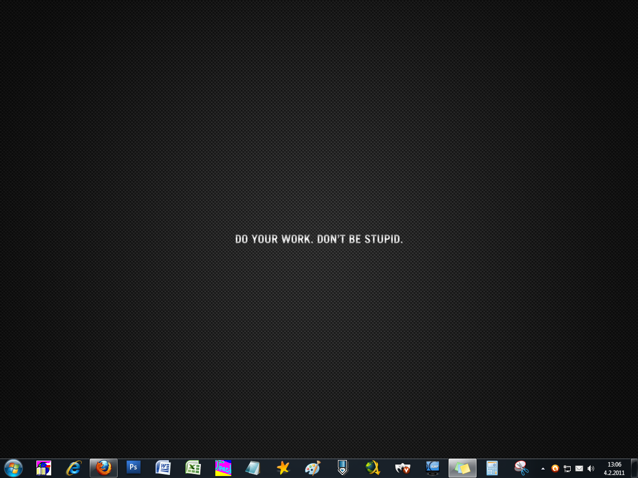 Tady je zas moje plocha. Ikony jsem také raději schoval, jinak by ten název nebyl vidět