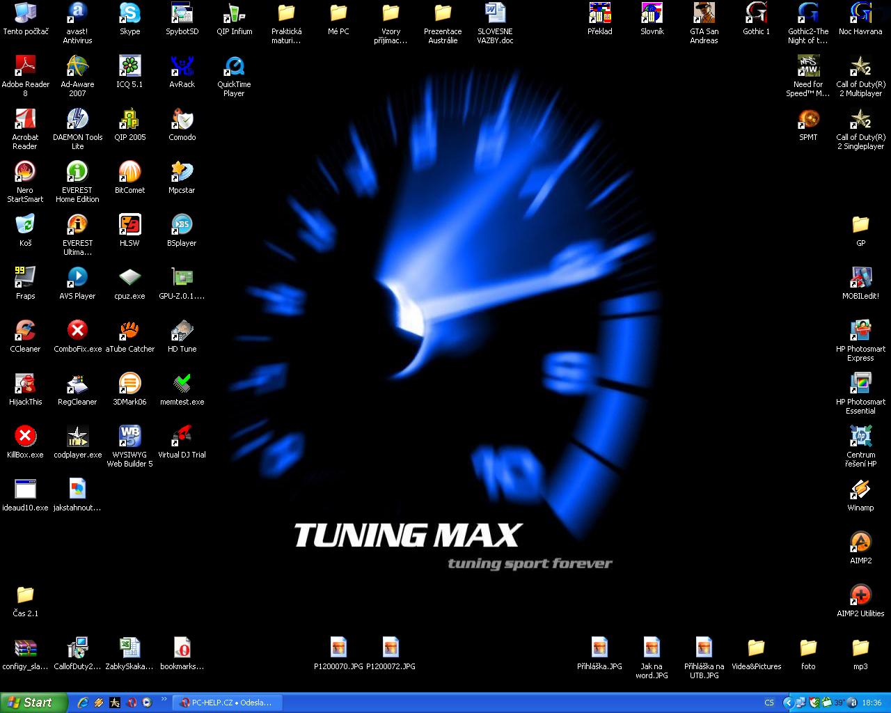 Ikony nejsou třeba, pokud víš, kde co je. Mohl bych ji tam dát i s ikonama, ale to bych musel prohrabat šupliky.ymorduur píše:Moc pěkná fotka, mohl by jsi někam nahrát bez těch ikon?Weslo píše:taky se přidám..tohle je pracovní PC.Ti co jim ještě nebylo 18 zavřete oči