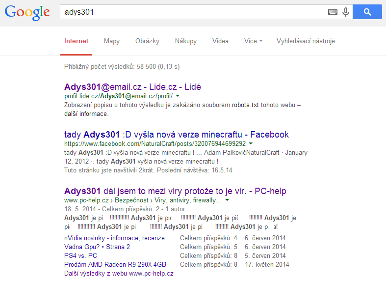 Zkoušeli jste někdy dávat svůj nick do Google?