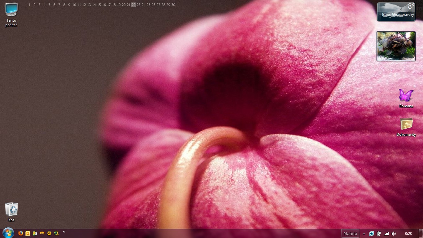 No, tak normálně moje plocha vypadá čistě, přehledně, ikony mají své stálé místo jen tapety se mění =) Ovšem nyní v listopadu mám plochu trochu víc zaplněnou =D