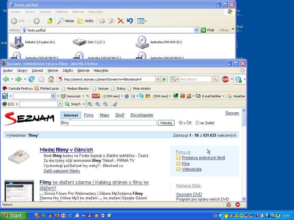 No ja tam tu lištu mam a mam tam i vsechno co tam ma byt krome tech tlacitek na stranky ( Tento počítač, Mozila... a tak)