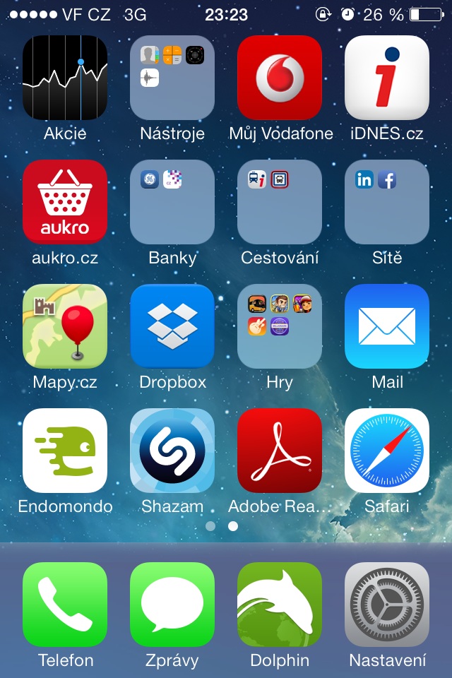 Za sebe můžu říct, že se mi úvodní obrazovku ještě nepodařilo uspořádat tak, aby mi vyhovovala. Nemůžu najít správný poměr mezi přehledností a potřebným počtem aplikací. V uspořádání na obrázku se pořád dost ztrácím :smile:
