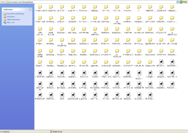 Dobrý den, když v PDAčku otevřu složku v Mojem zařízení - Documents and settings/default, tak tam najdu plno souborů a složek, které jsou pojmenované pro mne nečitelnými znaky. Velikost těchto souborů je udávána jako 1,35-3,55 GB (což je IMHO blbost). K čemu to tam je, jak se to tam dostalo, musí to tam být, mohu to smazat? Moc se mi to nelíbí.
