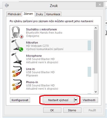 Mám tam vše povolené pro aplikace a mám to nastaveno jako výchozí zařízení.