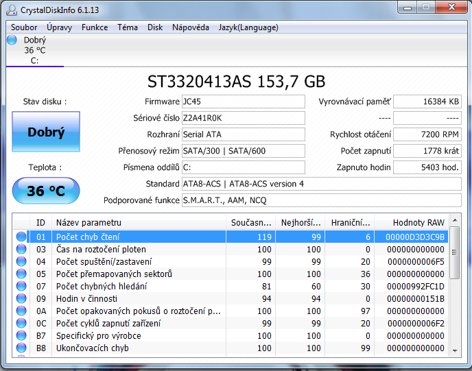 Pro definitivní potvrzení použij nástroj výrobce HDD Sea Tools, který je směrodatný. Vzhledem k výsledku CDI Ti stoprocentně vyjde stav HDD "PASS", co znamená, že je v pořádku.
