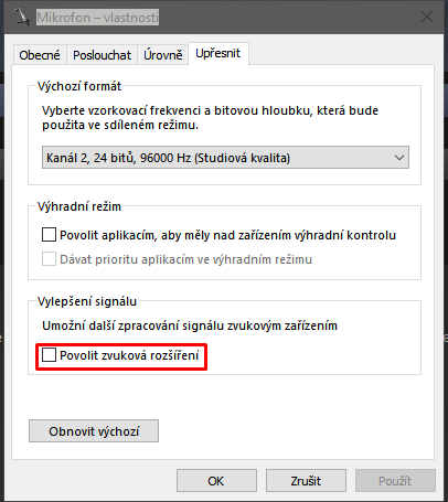 Měl jsem podobný problém(zněl jsem divně než třeba na teamspeaku), zkontroluj v zařízení pro záznám->nastavení mikrofonu->upřesnit->povolit zvuková rozšížení