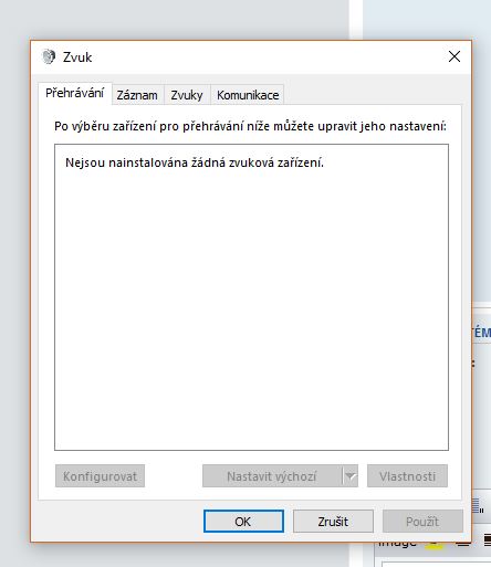 Všechny možné i nemožné ovladače Realteku už jsem vyzkoušel, ale tak jako tak tam stejně není vidět žádné zařízení výstupu zvuku.