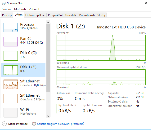 Je take zajimave, ze chvili pred seknutim se disk vubec nevyuziva, fakt 0% (viz. screen).