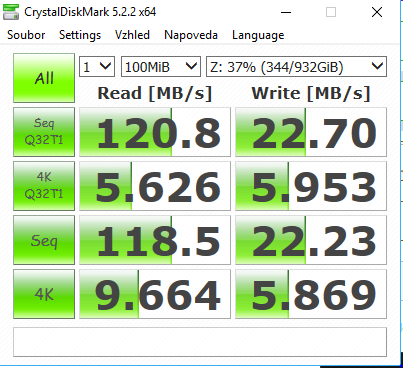 Sekvenční parametry jsou pro reálný provoz k ničemu, změř rychlosti na malých blocích ... stejně ale výsledky bude ovlivňovat cache, jakmile dojde k její zaplnění, rychlosti brutálně poklesnou. Popřemýšlej o nákupu plnohodnotného SSD. Pokud to ale s urychlením myslíš vážně, dej sem popis své hardwarové sestavy. Je totiž možné, že máš úzkých hrdel několik.