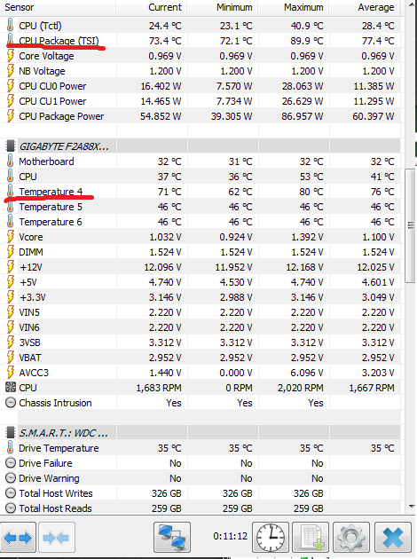 Tyhle dvě jsou jediné teploty, které jsou zvýšené a je to i u cpu a u základní desky, tak nevím jestli je problém v desce nebo s cpu. Odborný názor nechám na vás