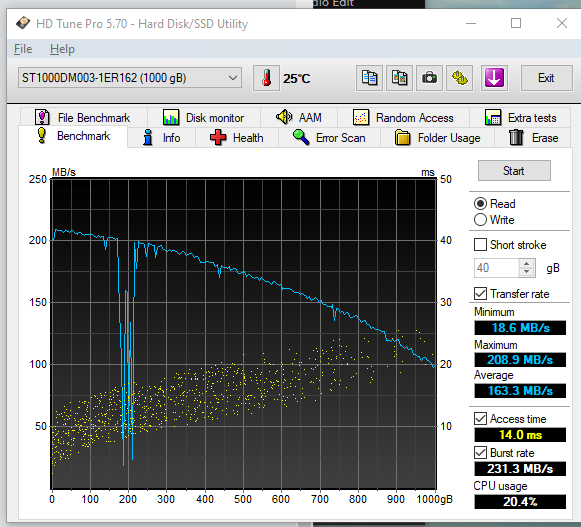 Včera jsem rešil problém s jedním HDD (1TB od Seagatu), kdy zničeho nic jsem ho přestal vidět. Bylo to po vytváření USB bootovacího s HirensBootem, kdy došlo k chybě. Ve správci disků jsem ho viděl jako RAW. Pomoci TestDisku se mi podařila obnovit Partion tabulka a disk opět je vidět a chodí. Nicméně jsem se začal o něj zajímat. Zde posílám vypísy ze SMARTu z HD Tune a CrystalDiskInfa. Také testy rychlosti. Zapis je hodně tragicky kolem 5MB/s - měl by bát kolem 80-100MB/s. Zapis není nejhorší ale také není stabilní. Setkal jste se s tím někdo, má smysl se pokoušet nechat opravit ty sektory přes chkdsk /r /f? Ještě zkusím vyměnit SATA kabel - jestli náhodou není nějaký vadný.