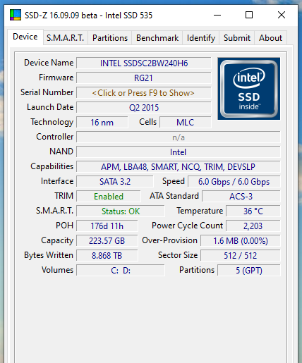 Mne takto zmizol ale iba raz, už dávnejšie Intel 335.Po hodinke odpojený od napájania sa zobrazil a potom už nevypadol takto ani raz.Pozri ako zobrazí disk v SSD-Zhttps://www.softpedia.com/get/System/Ha ... SD-Z.shtml.