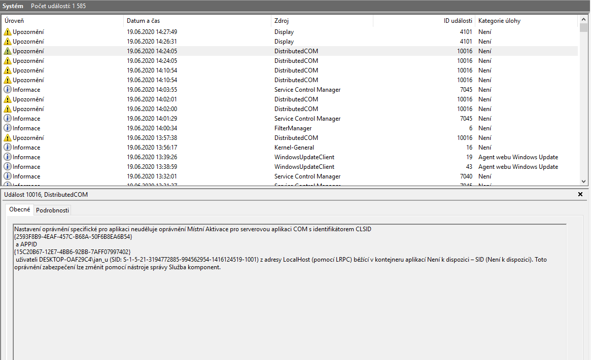 v prohlížeči událostí vidím několik upozornění viz příloha.