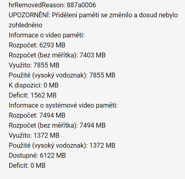 Problém s video pamětí grafické karty.
