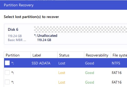 Skúsil som to teda v tom programe EaseUS partition manager cez Partition recovery obnoviť stratenú partíciu.Ale ak máš free verziu ,tak síce prebehne sken ale po stlačení Proceed ,vyskočí hláška na zakúpenie programu.Ak si to však vyriešiš,program spraví to, čo treba.Program obnovil partíciu, priradil písmeno a obnovil súborový systém NTFS.Dáta na disku zostali.