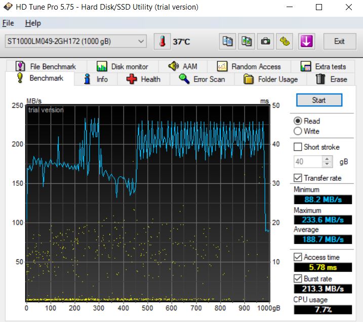 provedl jsem na něm nějaké testy přes HD tune, výsledky posílám v obrázkách dole.