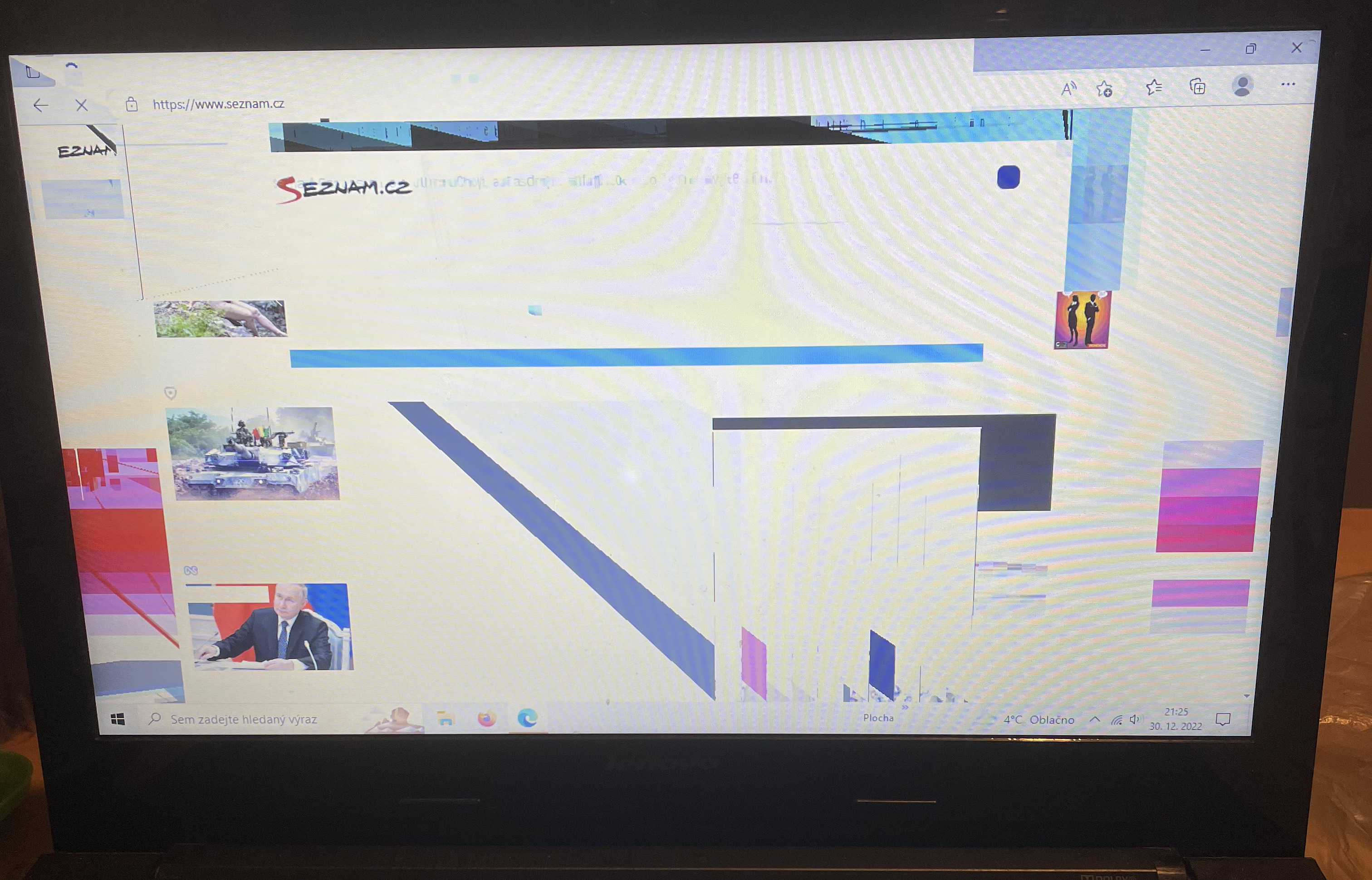mamina má notebook Lenovo a začal jí slušně haprovat, když najede třeba na stránku seznamu, rozjede se slušnej stroboskop. Stránka se nenačte celá a obdélníky lítaj tam a zpět. Jakmile člověk pohybuje myší, objekty se pohybují a není možný zkopírovat URL adresu. Viz připnutá fotka. Nenačtou se další stránky, například stream.cz, nebo twitch. Dělá to i u jiných prohlížečů. A notebook je starý zhruba 8 let.