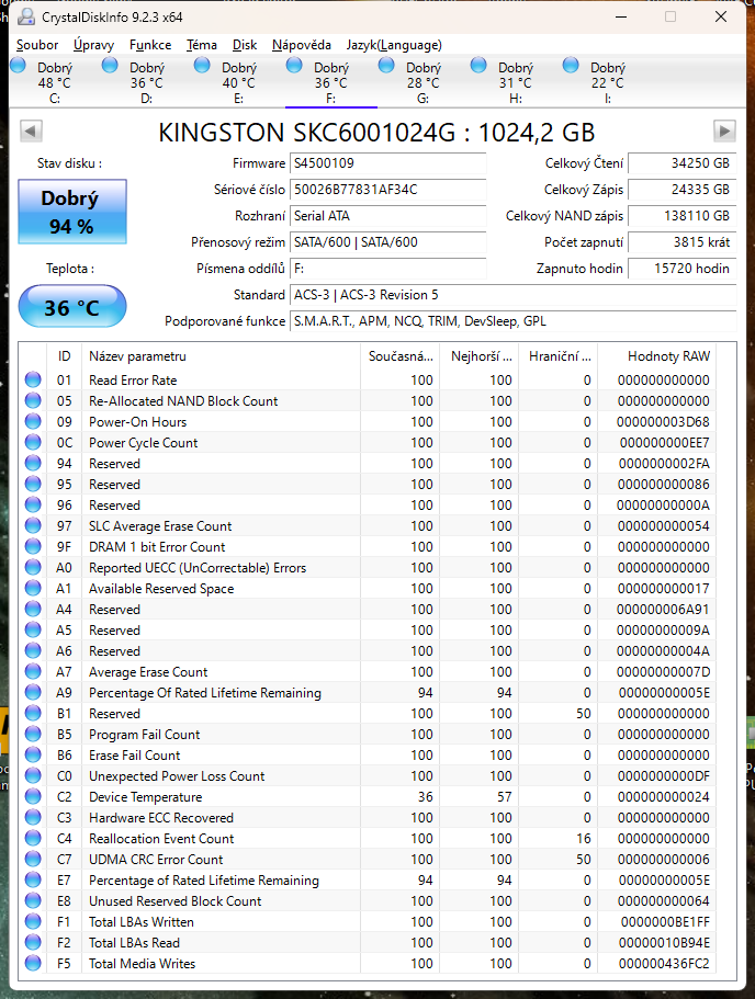 Dej screen s crystaldisku, rovnou tak zjistíme info o jaký disk se jedná když to nejsi schopen dodat ty.