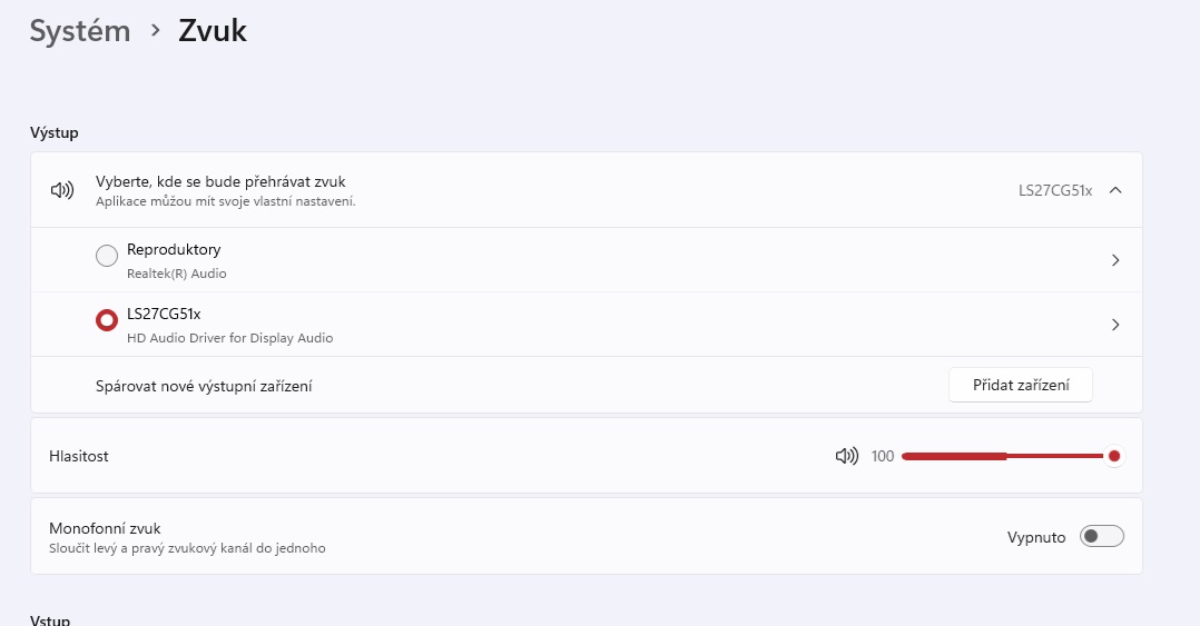 Když se v System Tray přepnu na zvuk monitoru, monitor nehraje. Přímo v nastavení monitoru je volume cca 85. V nastavení zvuku ve Windows vypadá vše také v pořádku. Přidávám screenshoty.